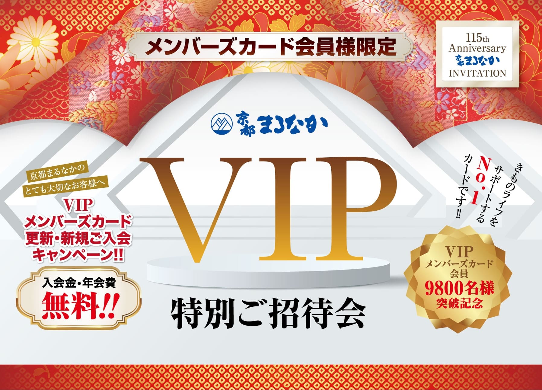 京都まるなかVIPメンバーズカードは、着物の割引や無料サービス、限定プレゼントなど充実の14大特典付き。新規・更新キャンペーンでは入会金無料、選べる来店プレゼントも。入会後すぐ特典利用可能、着物ライフをもっとお得に楽しめ […]