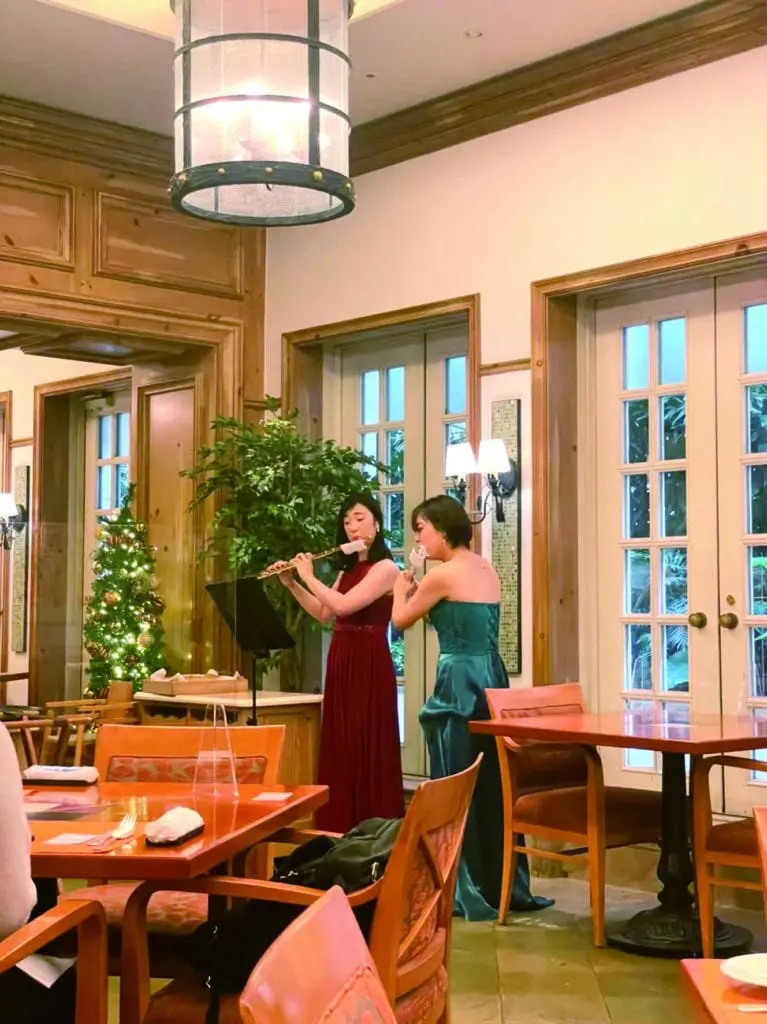 第177回は「ザ・リッツ・カールトン大阪」でのクリスマスランチを楽しみました。ホテルのクリスマスディスプ レイに気持ちも華やぎ、フルートの生演奏とともに豪華なお食事を堪能しました。