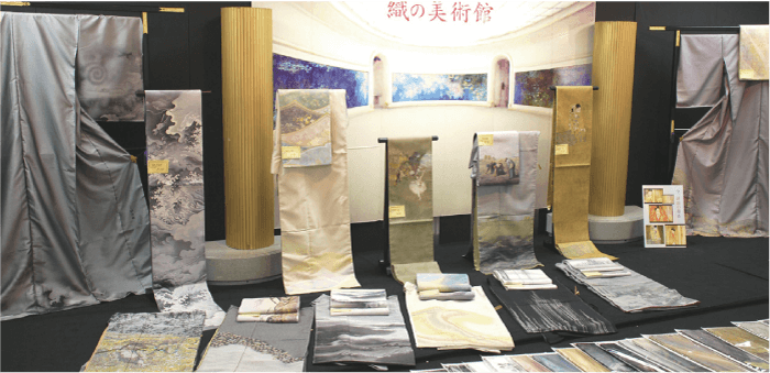 一方、スペイン・カタルーニャのサグラダ・ファミリアで知られる建築家アントニ・ ガウディ、パリ・オペラ座の天井絵を描いたマルク・シャガールをはじめ、クロード ・モネ、グスタフ・クリムト、パウロ・クレーら世界の巨匠の美の世界を染・織・繍・ 箔・絞の染織五芸を駆使し、「感動とときめき」をもたらす「きもの美」の世界を提案してきました。