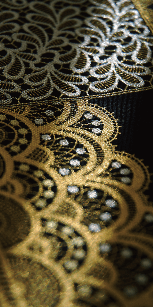 永年にわたり、東京・京都・奈良・福岡の4国立博物館をはじめ、全国の博物館、美術館の「日本の至宝」と呼ばれる美術品や工芸品の古典を探究。それらの美の真髄をモチーフとして多彩なきものや帯を創作し、染織界に「独自の世界」を築いてきました。