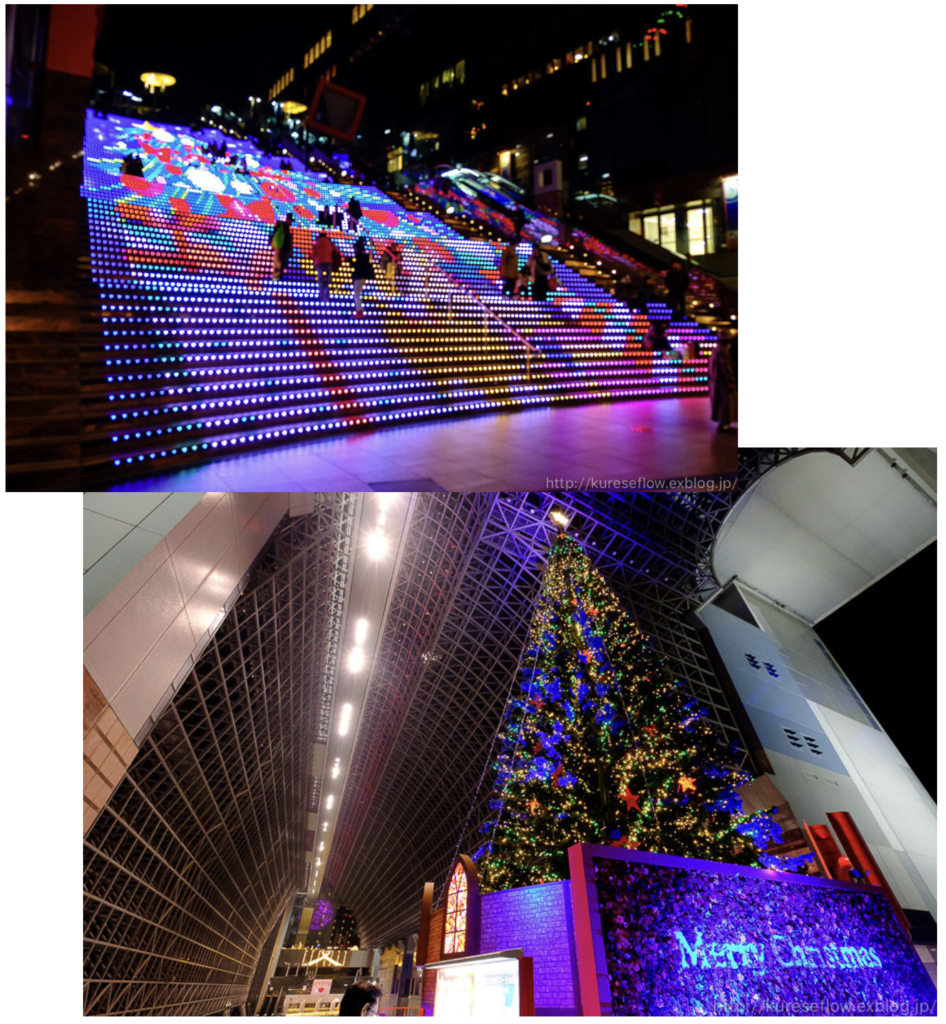 京都と言えば、京都駅中にある巨大クリスマスツリー。