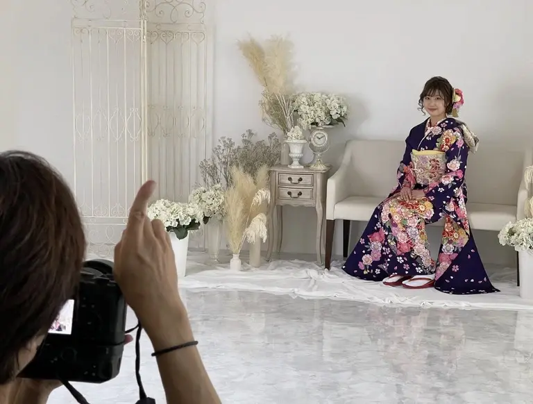 お気に入りの振袖をまとっての写真撮影。それは、多くの女性が憧れる特別な瞬間です。「特別な記念日だからこそ、振袖はもちろん撮影にもこだわりたい」その声にお応えして、お客様の魅力が引き立つバリエーション豊富なスタジオセットご用意いたしました。撮影に関わるヘアメイク・着付け・カメラマン、全て経験豊富なスタッフが対応いたしますので、安心して特別な一日をお楽しみいただけます。